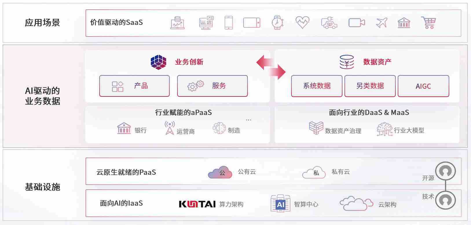 数字时代,,,,围绕企业数字化转型的关键要素,,PA真人游戏数码开创性的提出数云融合战略和技术体系框架,,,着力在云原生、、、数字原生、、AI原生和信创产业上架构产品和服务能力,,,为处在不同数字化转型阶段的快消零售、、、汽车、、、金融、、、、医疗、、、、政企、、、教育、、运营商等行业客户提供泛在的敏捷IT能力和融合的数据驱动能力,,,构建跨界融合创新的数字业务场景和新业务模式,,,,助力企业级客户建立面向未来的核心能力和竞争优势,,全面推动社会的数字化、、智能化转型升级。。。。